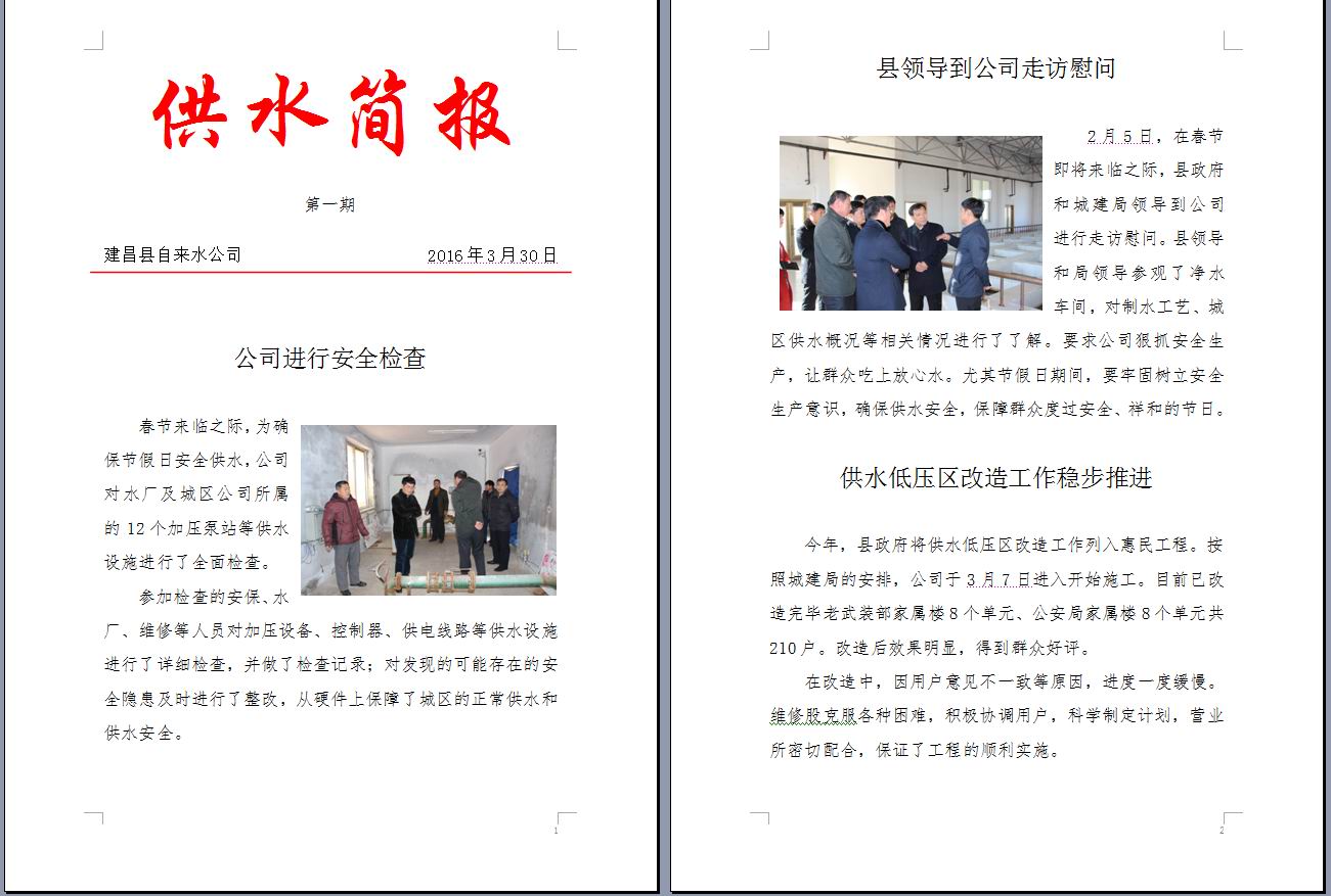 20160630 供水简报第二期